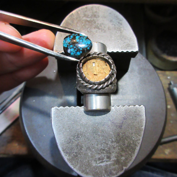 Bisbee Turquoise5.5ct Tufa cast finish Ring