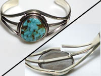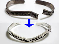 シルバーバングル、ゴールド・プラチナバングルの修理も承ります。インディアンジュエリーバングル等のターコイズ付きバングル、宝石の付いたバングル、他ブランド、メーカーのバングルの修理も可能です。